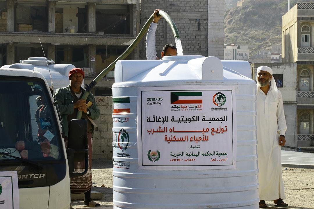 توفير مياه الشرب الآمنة والنظيفة للنازحين في المخيمات ومراكز الإيواء، ويشمل ذلك تزويد المخيمات ومراكز الإيواء وأحياء المدن الفقيرة والمنكوبة بخزانات توزيع مياه بلاستيكية، بحيث يتم تزويد هذه الخزانات بالمياه بشكل أسبوعي أو نصف أسبوعي حسب الحاجة