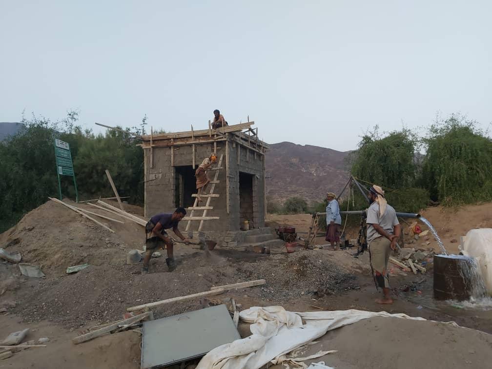 - بناء حوافظ خرسانية للبئر وقواعد لخزانات التوزيع
